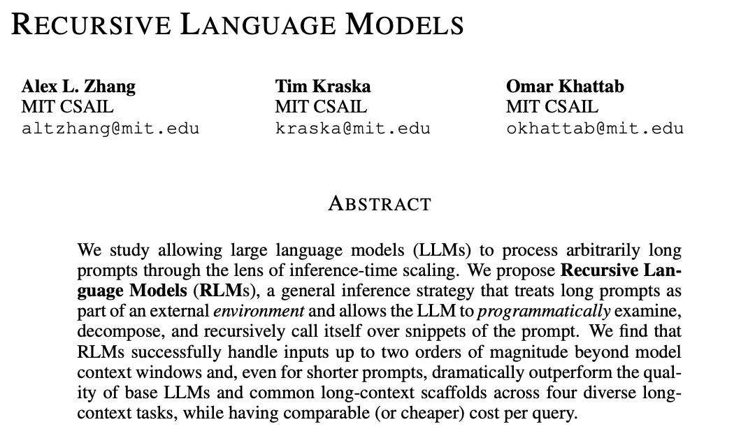 论文地址:https://arxiv.org/pdf/2512.24601