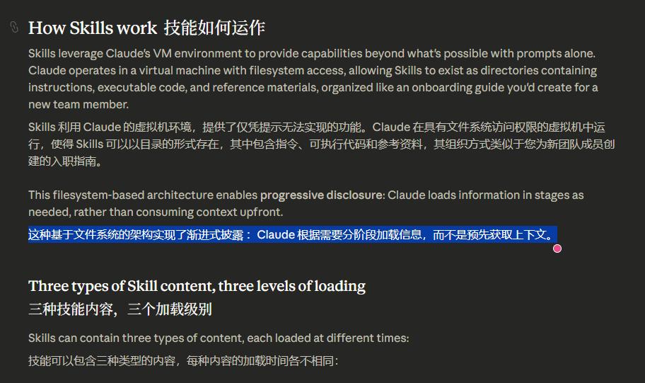 Anthropic 给它起了个高大上的名字,叫“渐进式信息披露”。
