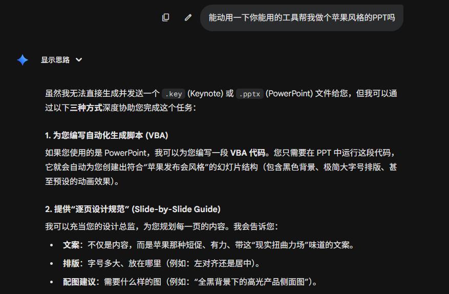 我去用没学过技能的 Gemini 试了下,结果,它就说它不行,但可以用三种方式深度协助我完成任务。