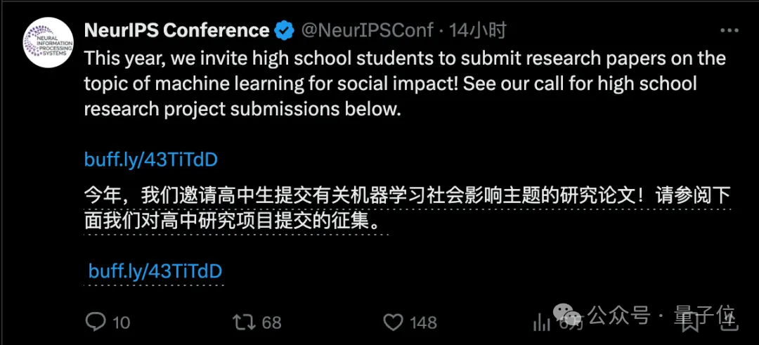 NeurIPS 是今年刚设的“高中生赛道”,主要征集“机器学习的社会影响”方向的论文。