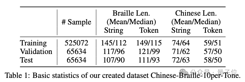 为此,论文作者们首先构建了一组中文-盲文数据集,包括 Chinese-Braille-Full-Tone、Chinese-Braille-No-Tone 和 Chinese-Braille-10per-Tone。