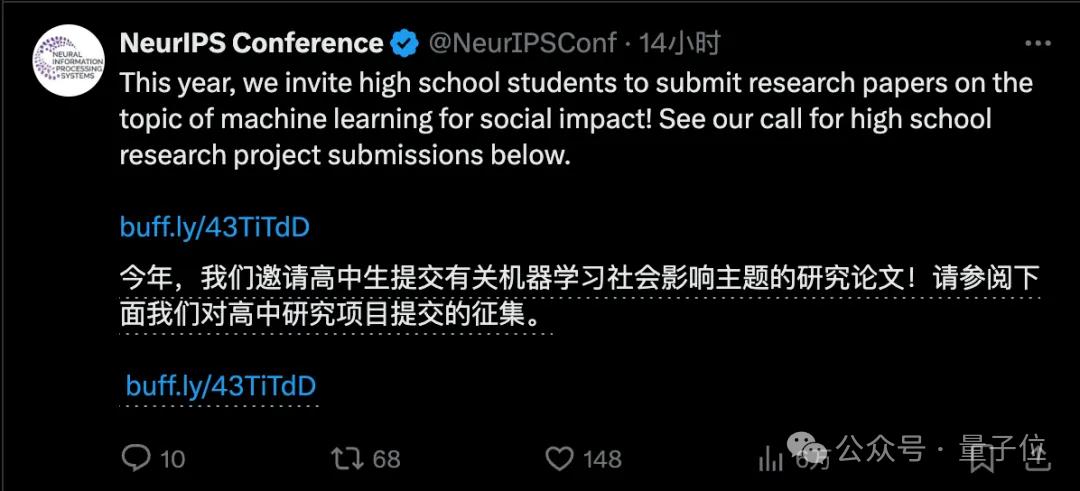 NeurIPS是今年刚设的“高中生赛道”,主要征集“机器学习的社会影响”方向的论文。