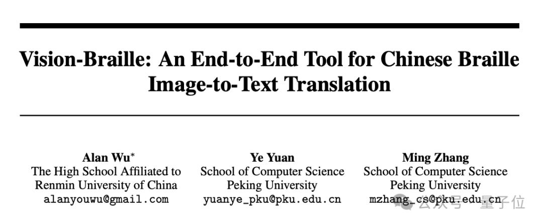 论文题为《Vision-Braille:An End-to-End Tool for Chinese Braille Image-to-Text Translation》,提出了一种中文盲文图像到文本的端到端翻译工具。