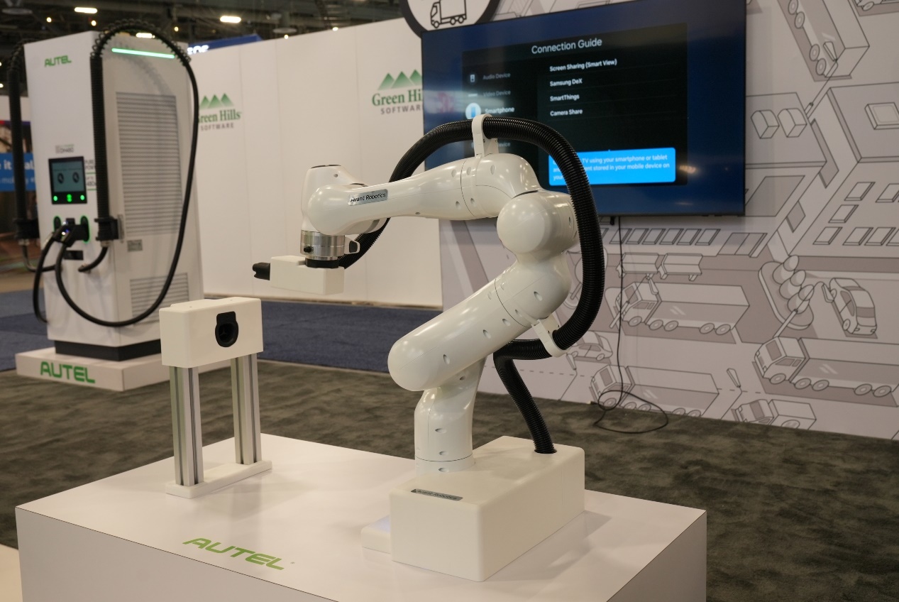 作为一家深耕北美市场21年的中国科技企业,道通科技并未单纯堆砌参数,而是试图回答一个关于未来城市的具体问题:当自动驾驶时代真正来临时,谁来给这些车充电?张裕钦在采访中提出了一个敏锐的观点:“自动驾驶需要自动充电,这是一个必然的闭环。” 他指出,未来的车是无人驾驶的,如果还需要人去拔枪插枪,整个自动化链路就是断裂的。基于这一逻辑,道通科技在CES现场展示了其具身智能集群解决方案,通过智能充电机器人与自动驾驶车辆的组网协同,实现了从云端调度、机械臂自动插拔枪到车辆自动归位的全流程无人化。据张裕钦透露,这套系统并非概念演示,其定位精度已控制在8厘米以内,且公司的机器人产品预计很快将实现规模化落地 。