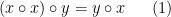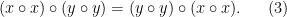 现在,在(1)中将x替换为x o x,然后使用(2),可以得出(x o x) o y = y o (x o x)。
