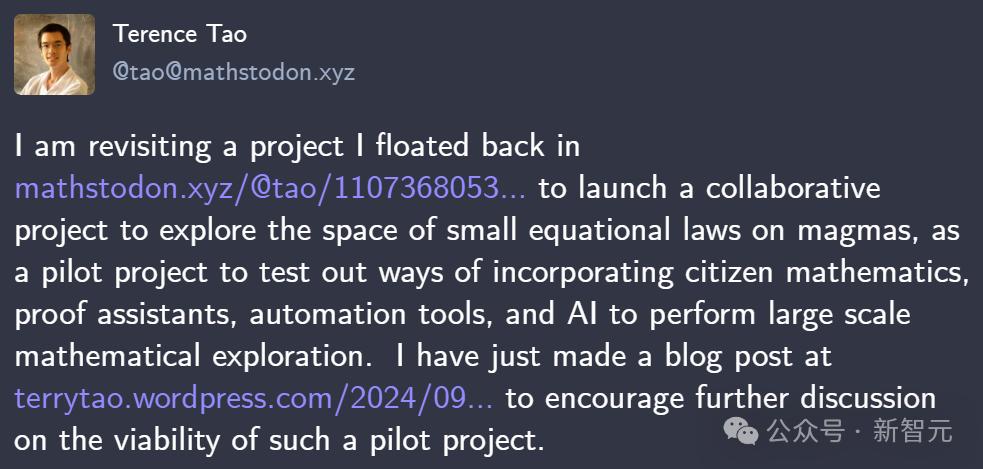 【导读】最近,陶哲轩向广大网友和数学爱好者发起了挑战:大众数学爱好者、证明助理、自动化助手和AI联合起来,是否可以证明扩展几个数量级的数学问题?