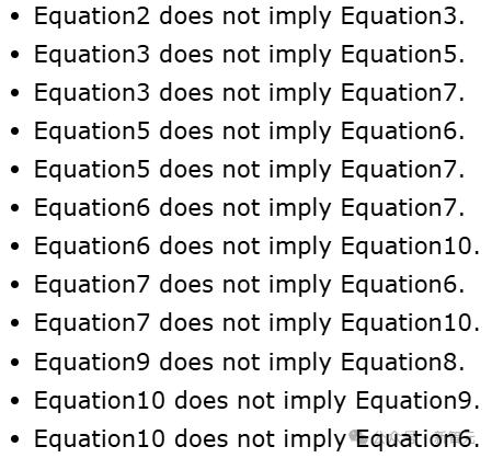 上面的哈斯图不仅断言了列出的等式公理之间的蕴含关系,还断言了公理之间的非蕴含关系。