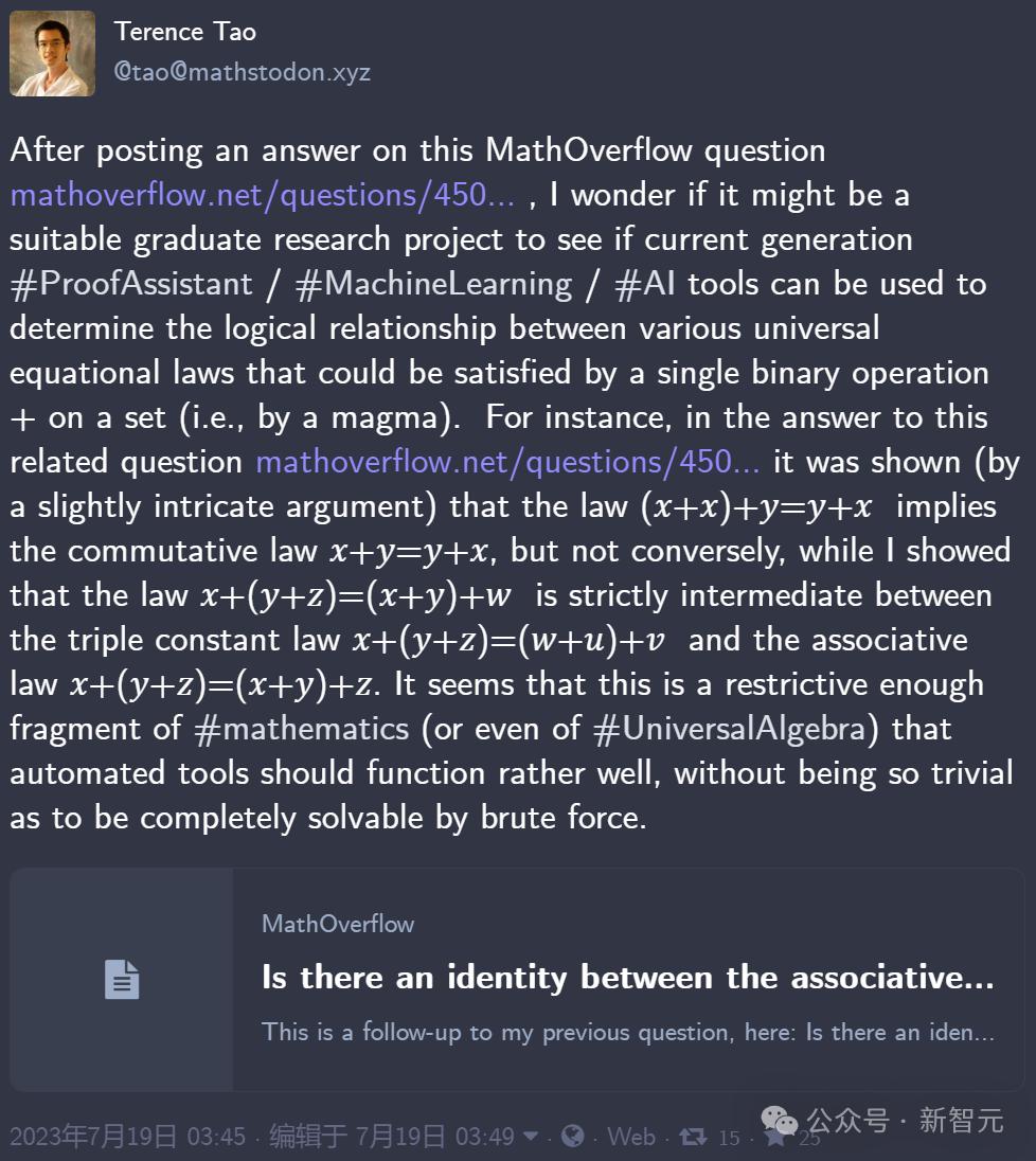 不久后,陶哲轩在自己的Mathstodon上,对它进行了进一步讨论。