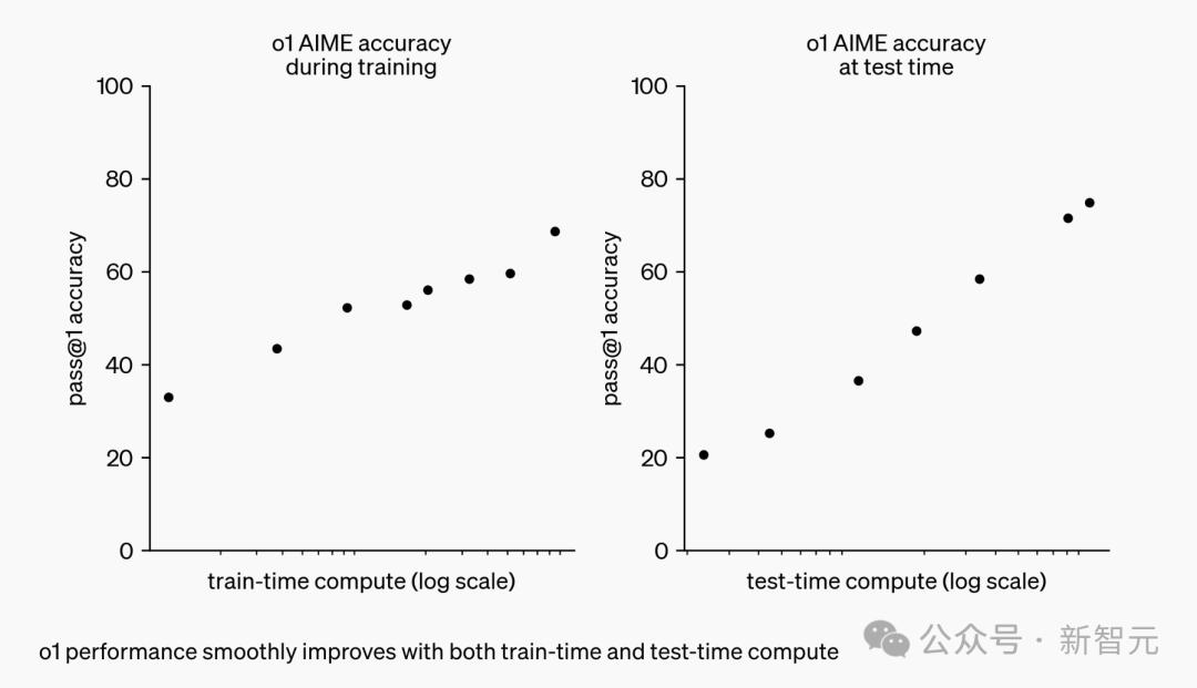 它开创了一种推理scaling新范式——随着算力增加、更长响应时间,o1性能也随之增长。