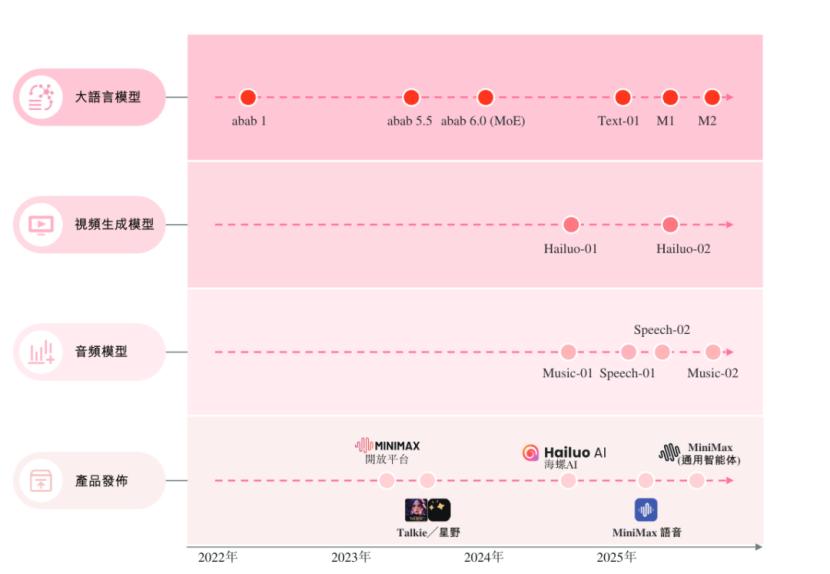 产品矩阵上,多元化体现得更彻底。MiniMax已经形成一套完整的产品组合:2023年推出了服务开发者的MINIMAX开放平台,AI交互应用Talkie(星野);2024年,其AI视频创作工具Hailuo AI上线,凭借高保真的物理模拟和1080P视频生成能力,在短视频平台推动了新一轮的创作增长。2025年,MiniMax语音产品也正式发布,进一步完善了其多模态能力。