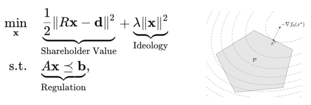 资本主义经济中一家公司的简单数学模型,用于解决二次规划优化问题。