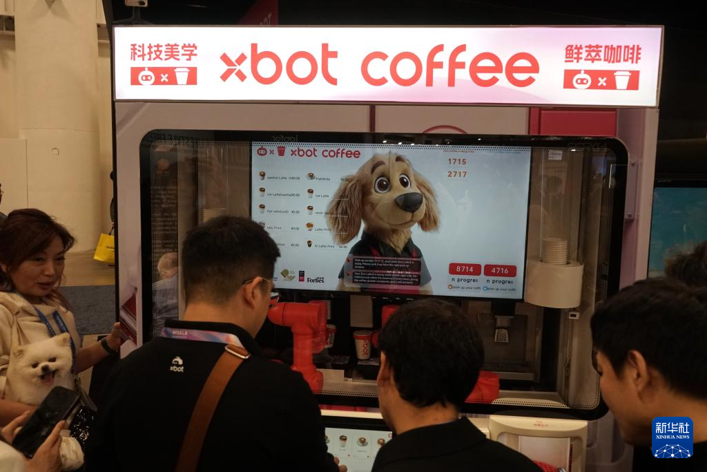 1月7日,人们在2026年美国拉斯维加斯消费电子展(CES)体验影智XBOT咖啡机器人。 新华社发(曾慧摄)