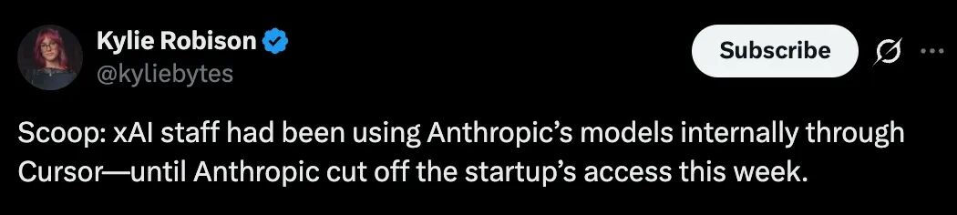 对于xAI而言,此次被切断服务并非孤立事件,而是Anthropic收紧技术出口、构建排他性竞争优势的必然一步。