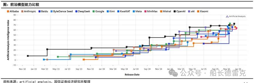 我们没有看到移动互联网时代先发优势不断拉大差距、形成护城河的情况,反而在Scaling law的束缚下,大家模型差距正在逐步减小。