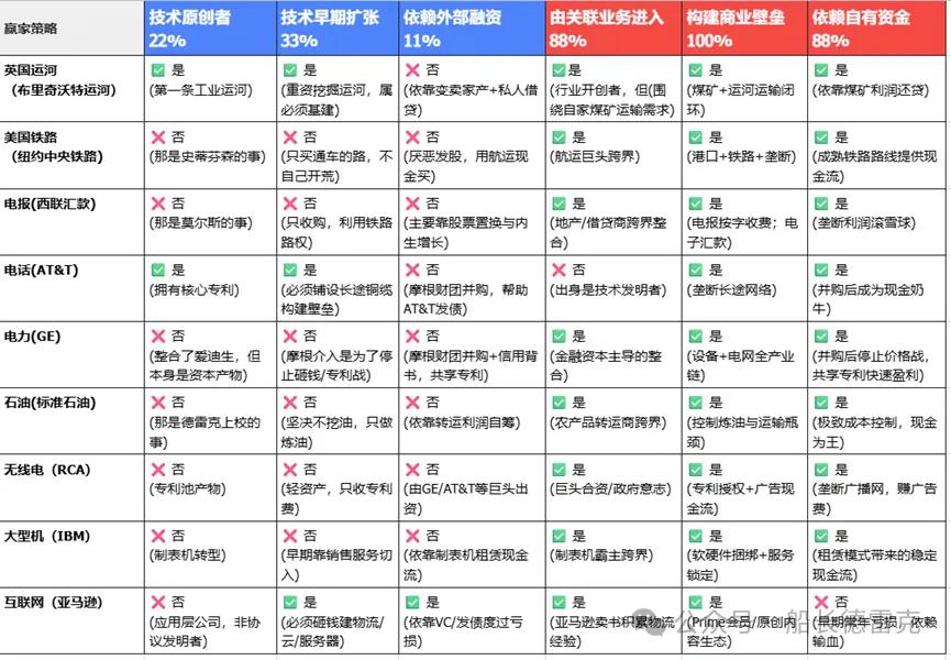 图11:过去科技革命最终赢家的策略分析—船长总结