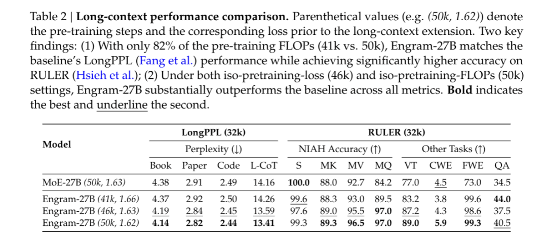 论文解释说,Engram 把局部依赖建模卸载给了查找操作,释放了注意力容量去关注全局上下文。