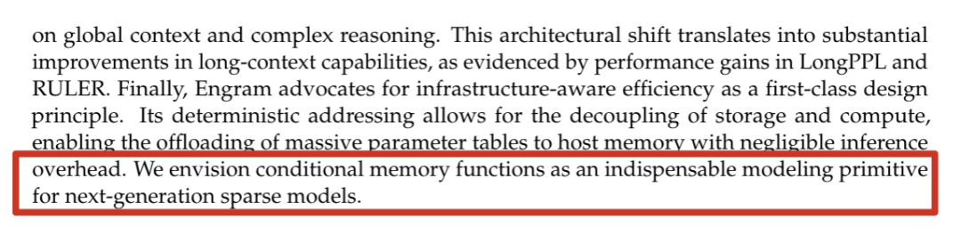 结论中明写道:我们将条件记忆视为下一代稀疏模型不可或缺的建模原语。