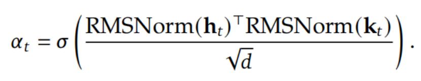 为了保证梯度稳定性,他们在计算标量门α_t∈(0,1)之前,先对Query和Key进行RMSNorm处理: