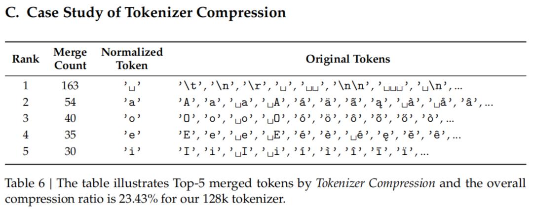 这个过程能让128k大小的分词器有效词表大小减少23%。