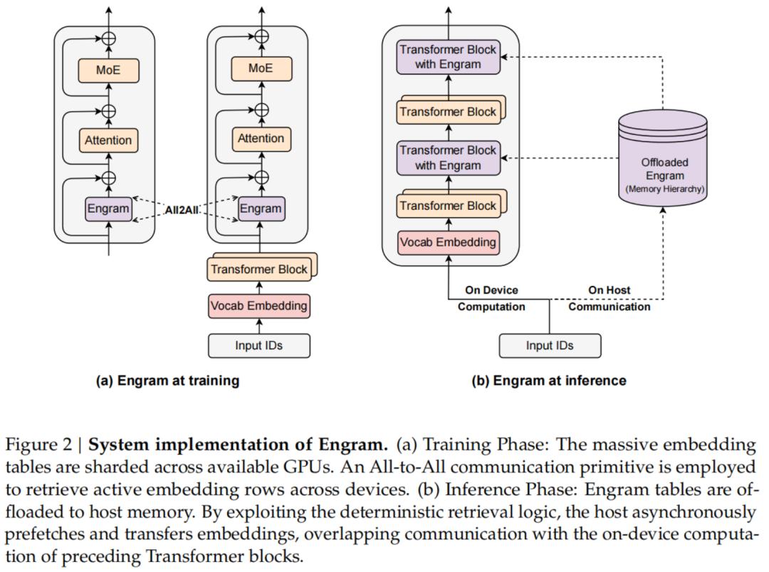 与依赖运行时隐藏状态进行动态路由的混合专家模型(MoE)不同,Engram的检索索引仅取决于输入的Token序列。