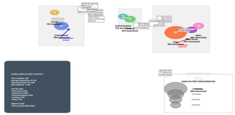中国(占全球投资的34%)主导着制造业自动化和“黑暗工厂”的发展。政府政策积极支持人力替代。他们甚至连装装样子都不关心就业影响。