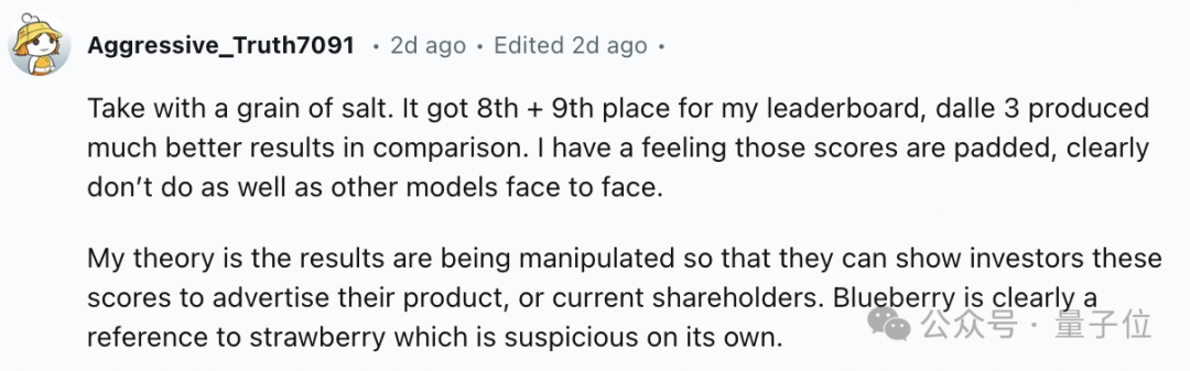 当然,也有人质疑“蓝莓”模型分数虚高,在一些情况下它的表现不及 Dall・E 3。