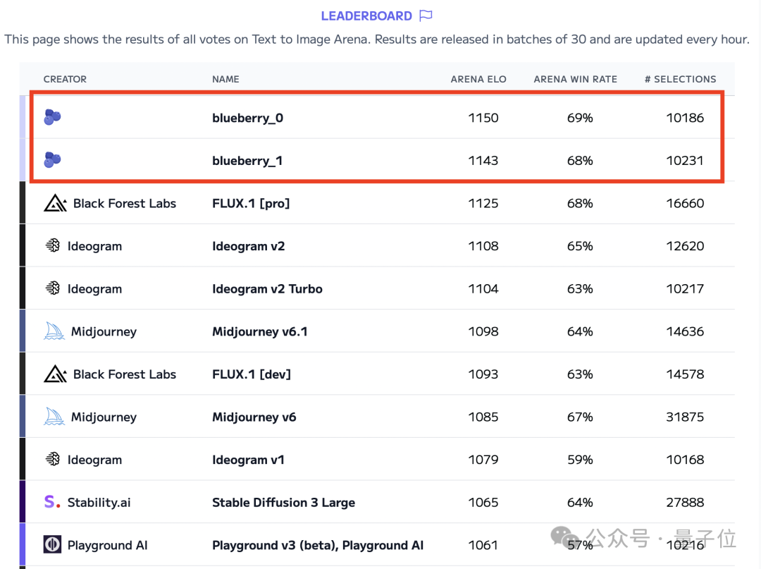 在文生图模型排行榜上,两个“无人认领”的模型 blueberry_0 和 blueberry_1 力压 Flux.1、Ideogram v2、Midjourney v6.1 等知名模型,成为最新榜一榜二大哥。