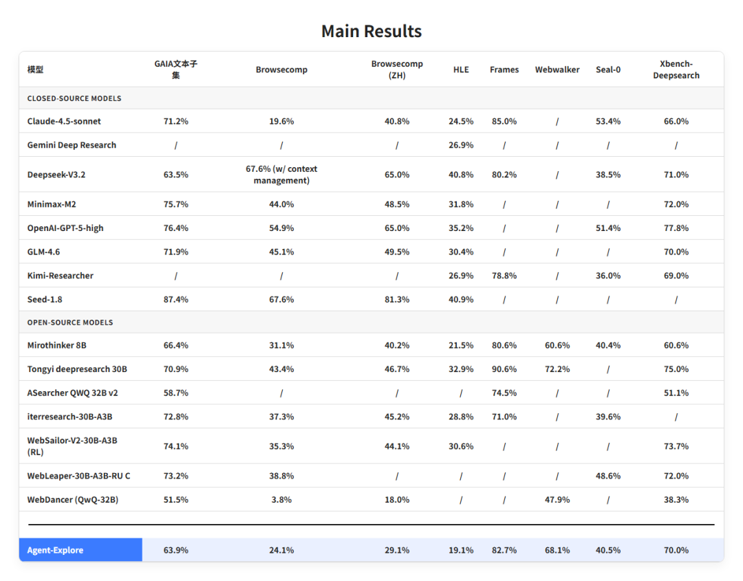 AgentCPM-Explore 模型宣布开源,并开源了从 Base 模型(GAIA 25.24%)进化至 SOTA 模型(GAIA 63.90%)的全流程代码。