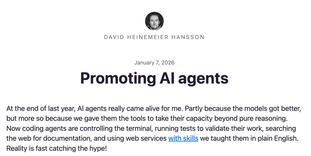 Ruby on Rails创始人、Rust语言的铁杆拥护者DHH,也在社交媒体上疯狂安利AI编程工具。他甚至放话: