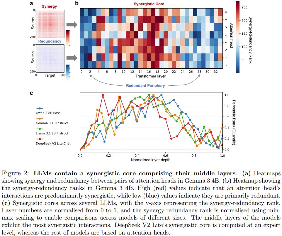 研究团队利用部分信息分解(Partial Information Decomposition, PID)框架,对 Gemma、Llama、Qwen 和 DeepSeek 等模型进行了深度剖析。