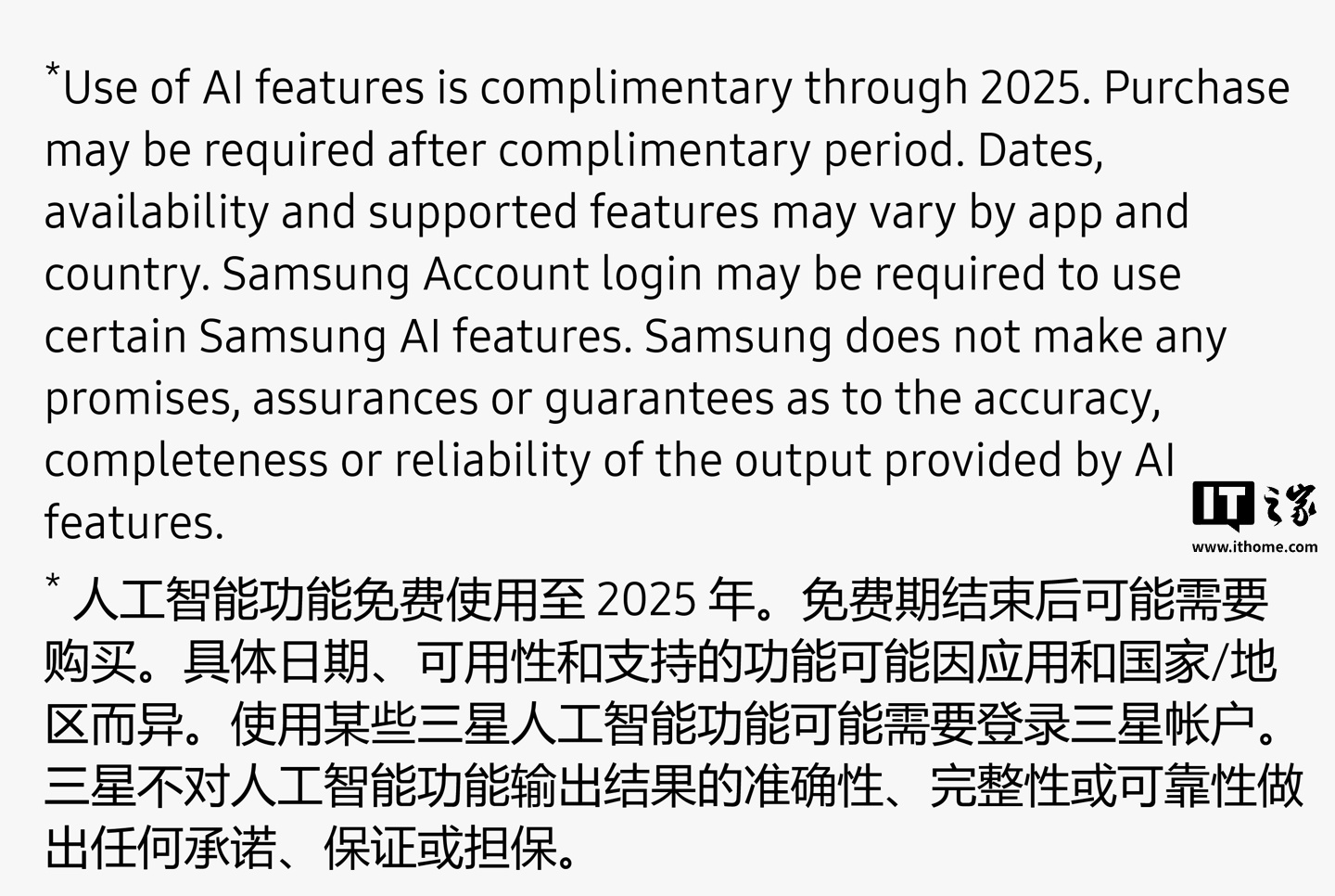 虽然基础套餐确认为“永久免费”,但三星并未完全放弃 AI 变现的可能。新版脚注特别指出,“未来发布的增强型功能或新服务可能会以付费形式提供”。