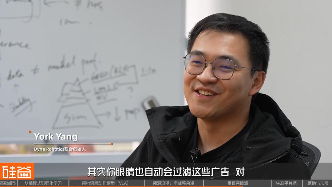 为什么说基于某种程度,它的Scaling Law(缩放定律)肯定不像大语言模型这么简单粗暴。因为我们之前也和挺多做大语言模型的这些人聊过,他们已经发现,语言方向的数据,哪怕用很多低质量数据,比如一堆文本,中间插了一段广告,然后再是接着文本,就这样的数据它一样能训练出比较好的模型。因为模型它看的数据足够多之后,它自动就会过滤掉广告。但是机器人当前我们觉得规模化更多的是来自于需要比较高质量的数据。你如果囊括了很多很繁杂的数据在里面,机器人模型可能就不知道我要注意力集中在哪一个地方,所以最终它其实出来的效果并没有那么好。