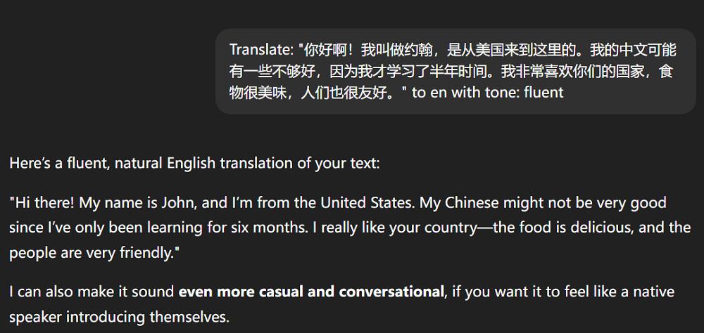 总体而言,ChatGPT Translate提供的译后编辑功能并不惊艳,对普通用户而言,直接在ChatGPT里进行翻译和编辑,体验甚至会更加连贯自然。