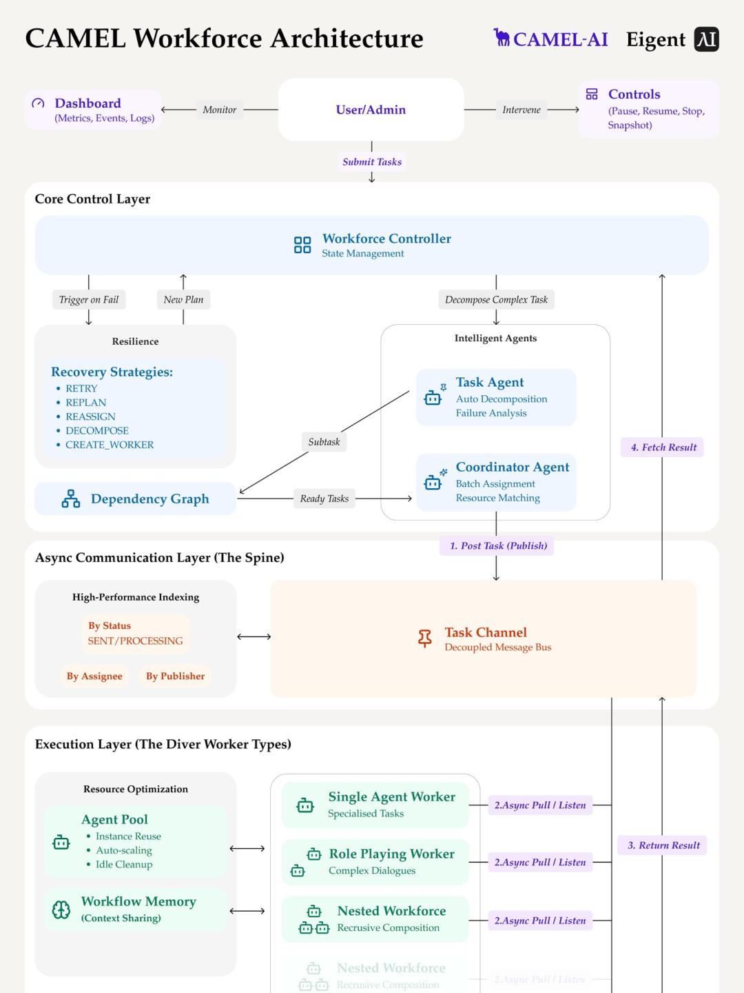 他从CAMEL基础出发,构建了高效的workforce系统,支持并执行、容错与递归,真正把研究落地成桌面生产力工具。