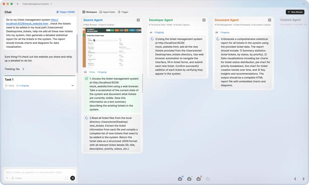 Eigent则从头打造了闭环运行的环境,让Developer Agent真正自己动手。