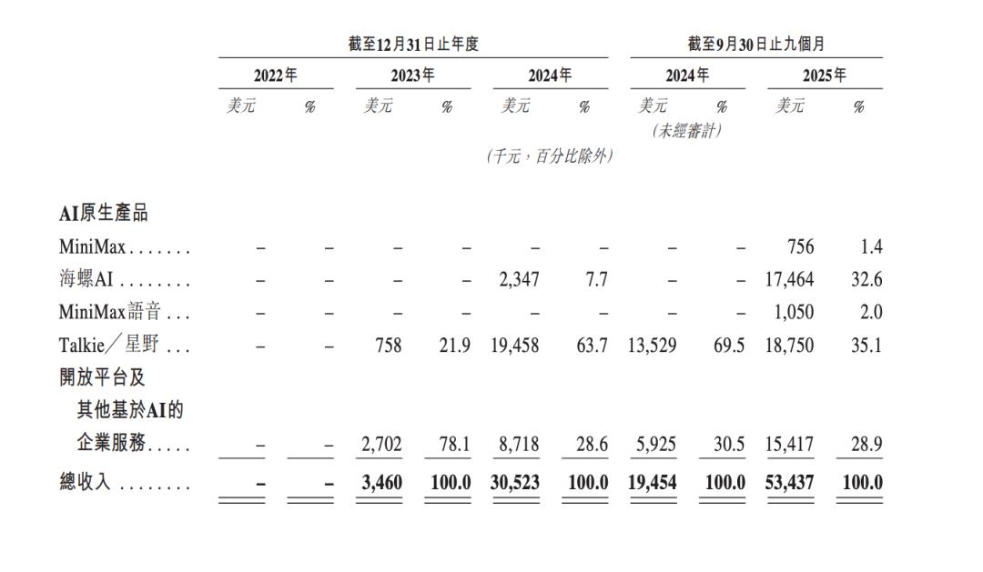 MiniMax的研发开支同样迅速放大,2023年为5436万美元,2024年为1.85亿美元,2025年前九个月为2.21亿美元。最直观的对比是,MiniMax 2024年的研发投入约为当年收入的六倍。