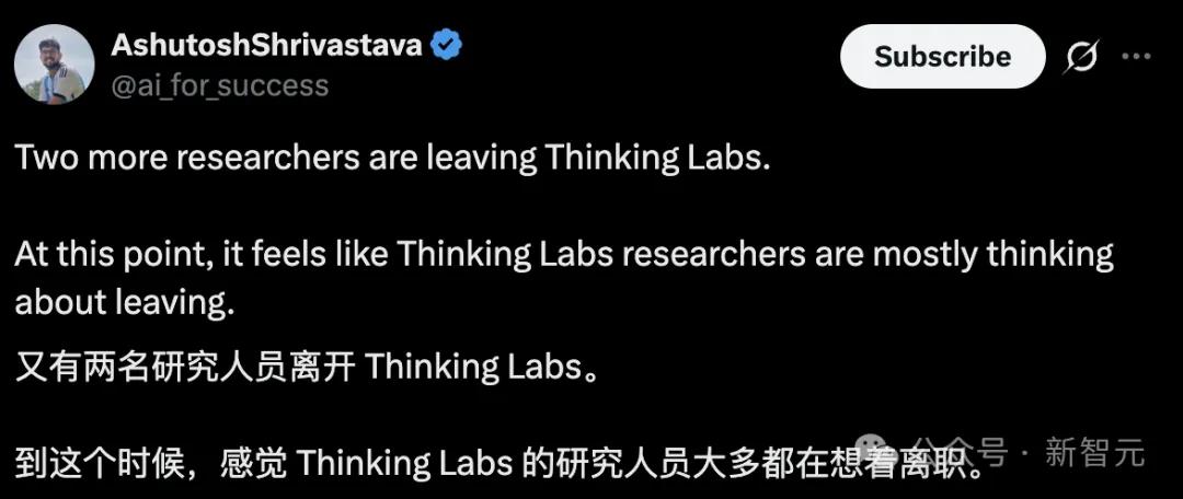 然而对于刚刚起步且雄心勃勃的Thinking Machines Lab而言,在成立不到一年的时间里失去包括CTO在内的两位联合创始人,无疑是一记沉重打击,将引发外界对其稳定性和执行能力的担忧。