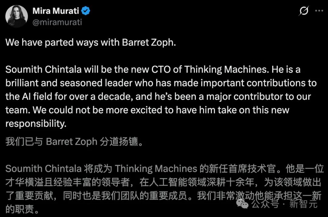 对比前文提到的知情人士爆料——「Zoph曾向竞争对手泄露公司机密信息」,再反过来看Mira这次对待联创Zoph离职的态度,似乎就不难理解。