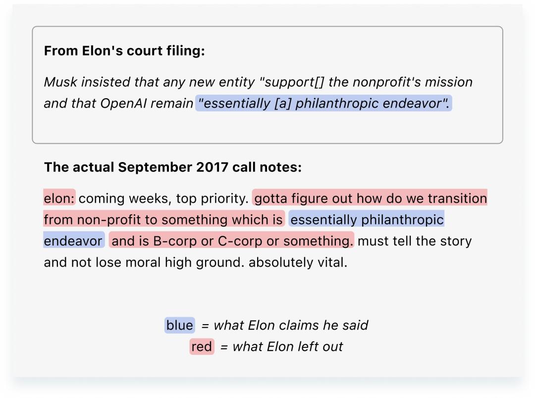OpenAI这边反驳的核心论点是:马斯克在断章取义。