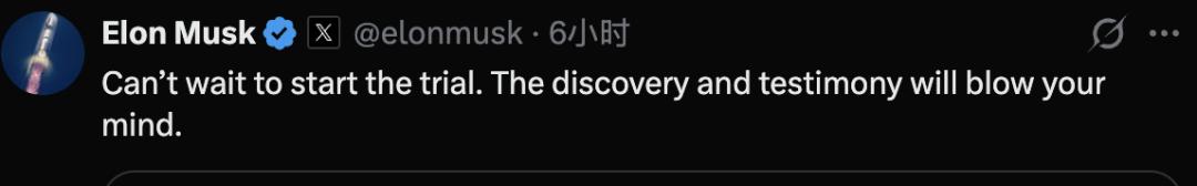 马斯克还放话“迫不及待想赶紧开庭了,庭审结果和证词绝对会让你大吃一惊”。