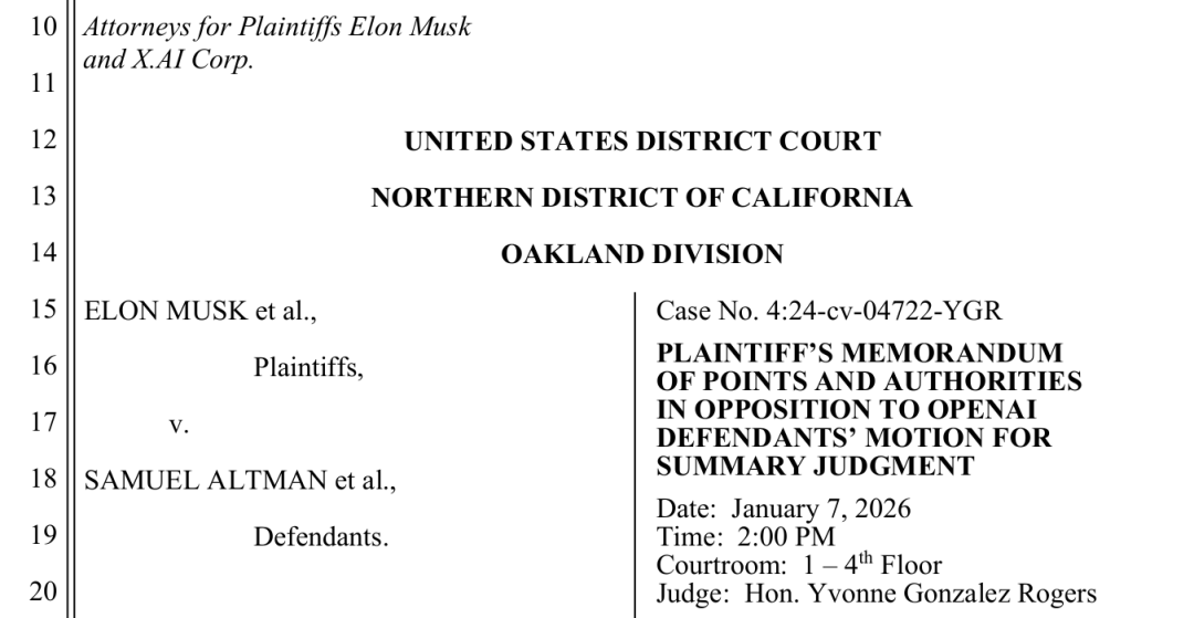 4月27日,马斯克和奥特曼将在奥克兰联邦法庭上,在陪审团面前宣誓作证。