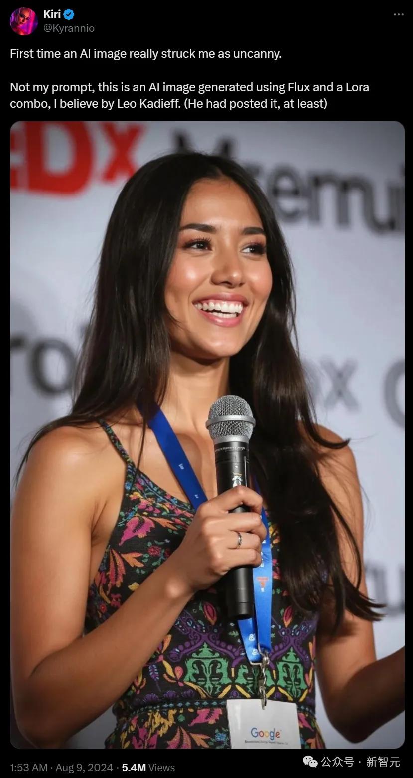 而到了今年,AI图像王者Flux出世,各种TED演讲者的逼真照片,再配上AI视频工具动起来,几乎骗过了所有人。