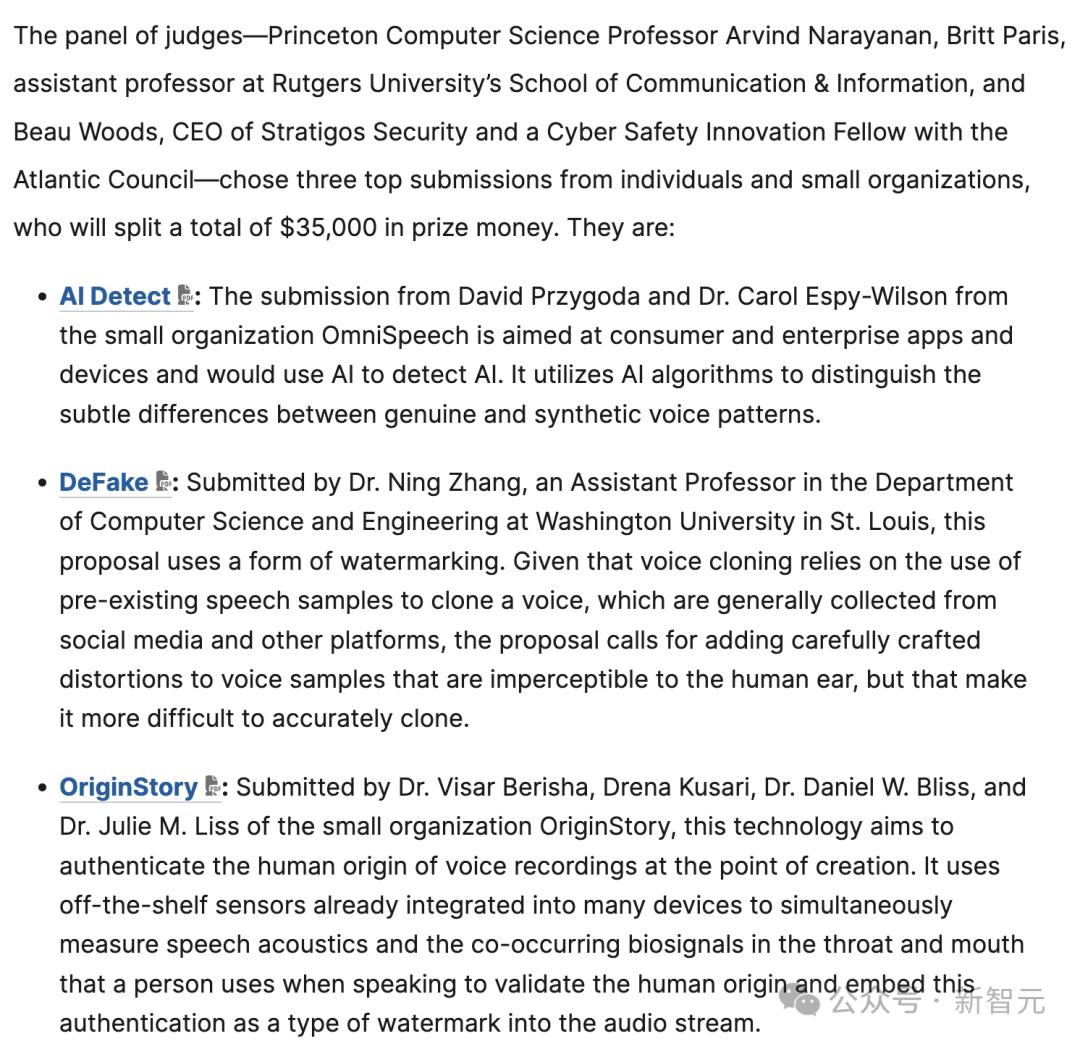 值得一提的是,AntiFake的衍生版本DeFake,还在今年4月初美国联邦贸易委员会举办的语音克隆挑战赛中获得了一等奖。