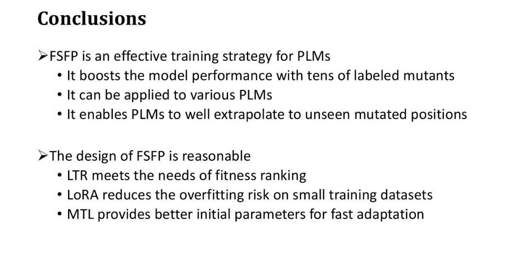 FSFP 是一种针对 PLM 的小样本学习策略,能够利用少量(几十个)有标注训练样本显著提升 PLM 在突变效果预测中的表现,并能灵活地应用于多种不同的 PLM 上。实验表明,FSFP 的设计具有合理性: