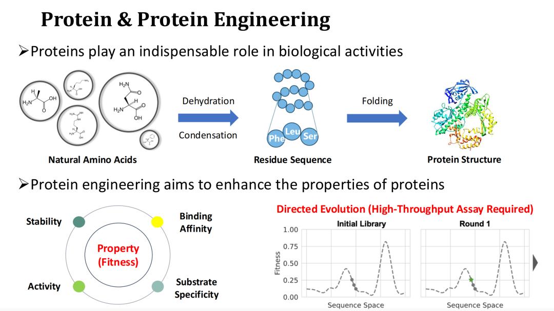 由于天然蛋白质往往难以满足工业或医疗的需求,因此蛋白质工程希望通过对蛋白质进行突变,从而提升蛋白质的功能属性,如催化活性、稳定性、结合能力等。