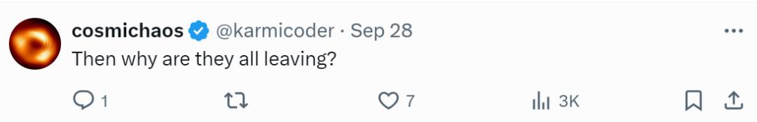 最后,还有网友灵魂一问:那他们(Ilya Sutskever、Mira Murati 等)为什么都离开了?