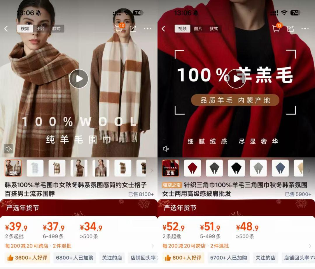 其中,盛佳仪的努力功不可没:一方面,她带领团队研发出了新工艺,使围巾在增重后仍保持柔软蓬松,保暖性提升数倍。另一方面,她每年还需要主导上百款围巾的设计,是团队主心骨。