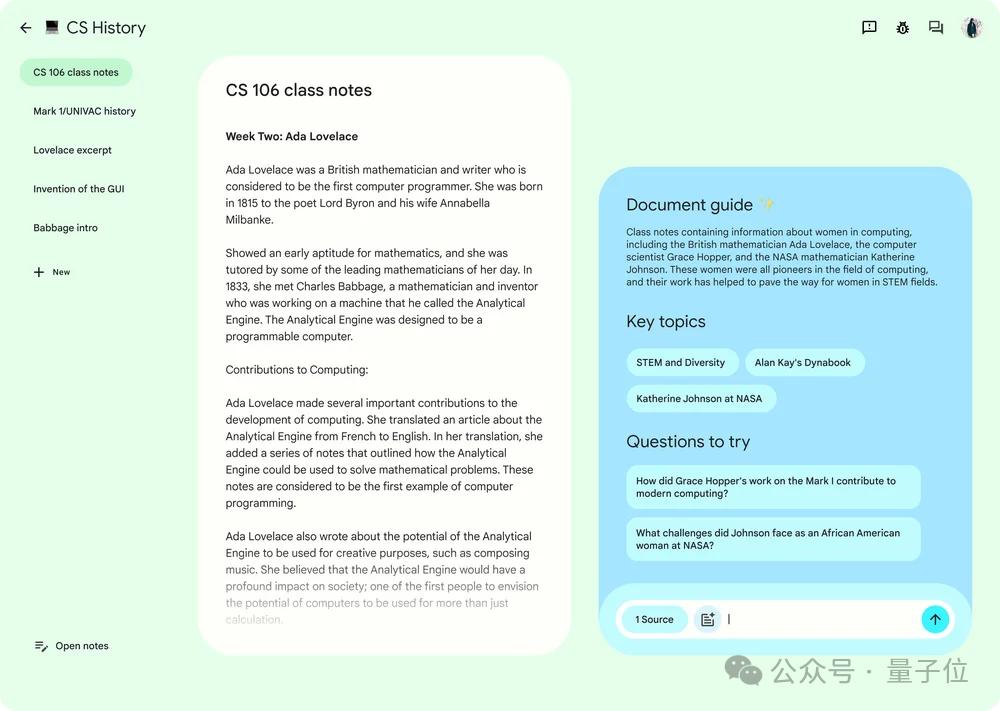 NotebookLM由Gemini 1.5 Pro来支持,也就是谷歌家目前旗舰级大模型。