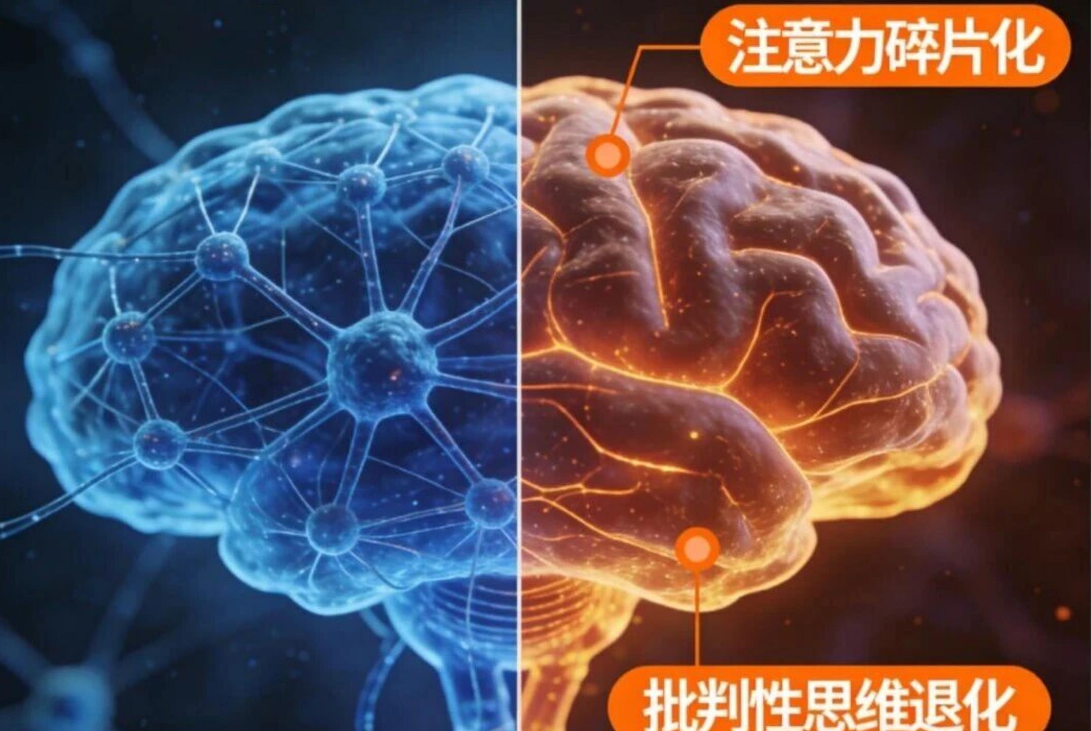 其次是思维碎片化。AI泔水往往是碎片信息的堆砌,缺乏深度逻辑和系统思考。长期摄入,我们的大脑也会习惯这种“快餐式思考”,难以进行复杂、深入的思维活动。