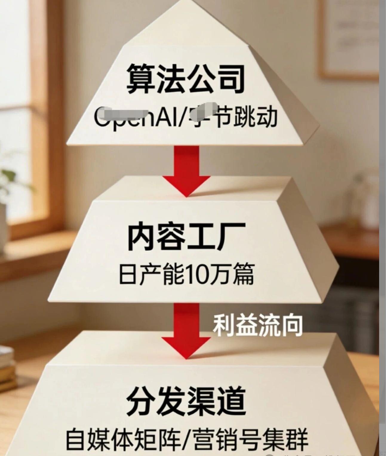 第四,批量生产化。一个模板,换几个关键词,一小时能生成上百篇“原创”。你在不同平台看到的“换汤不换药”的内容,很可能出自同一套AI系统。